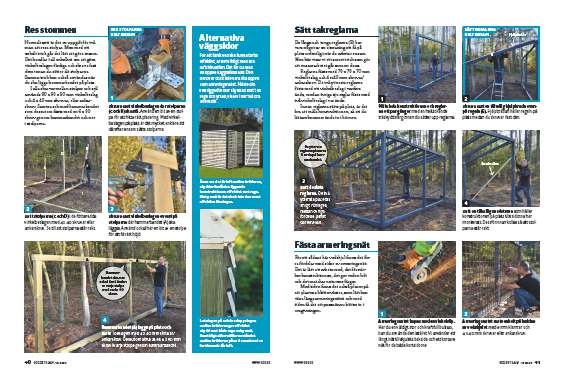 Normalt sett är det en uppgift för två man att resa stolpar. Men med ett enkelt trick går det lätt att göra ensam. Det handlar i all enkelhet om att göra vinkelbeslagen färdiga och skruva fast dem innan du sätter dit stolparna. Samma trick kan också användas när du ska lägga hammarbandet på plats.