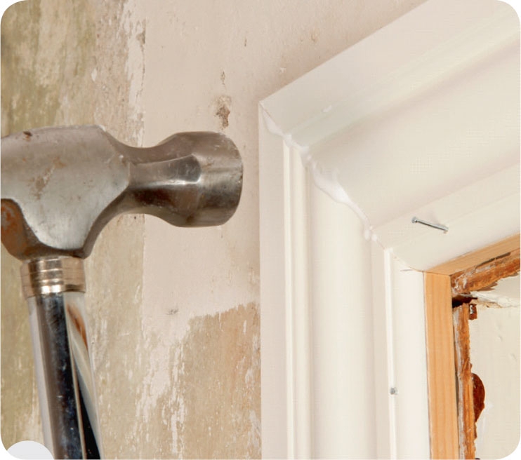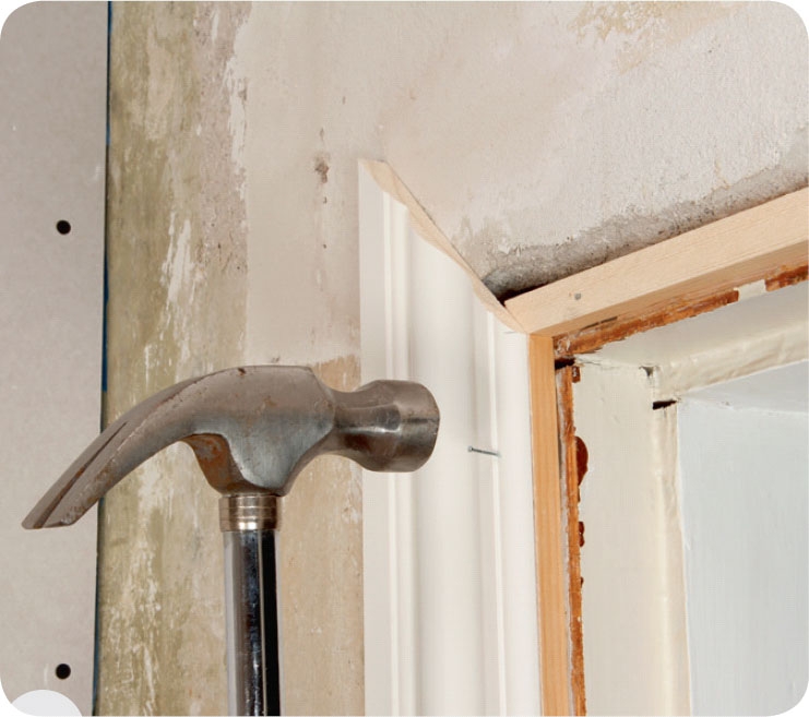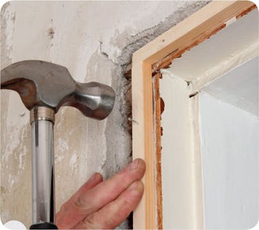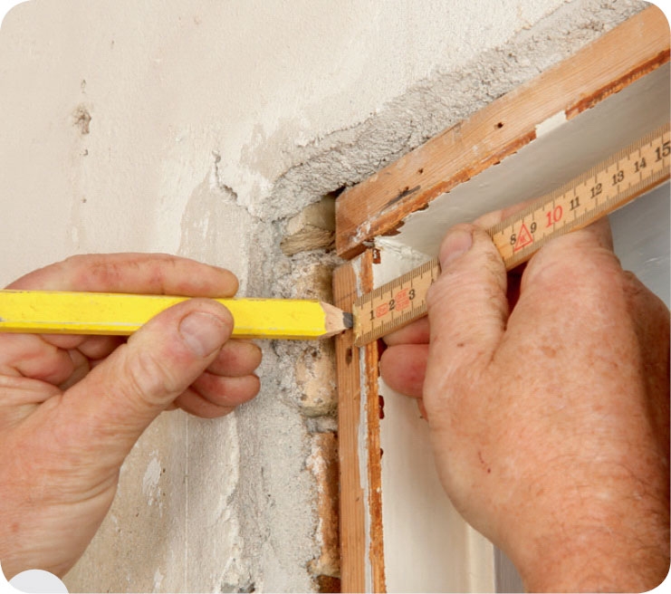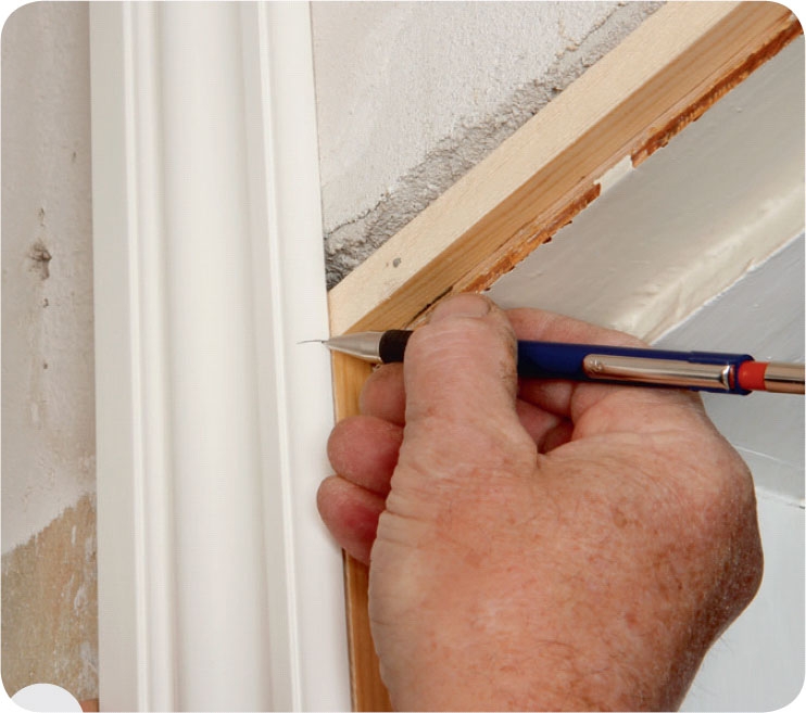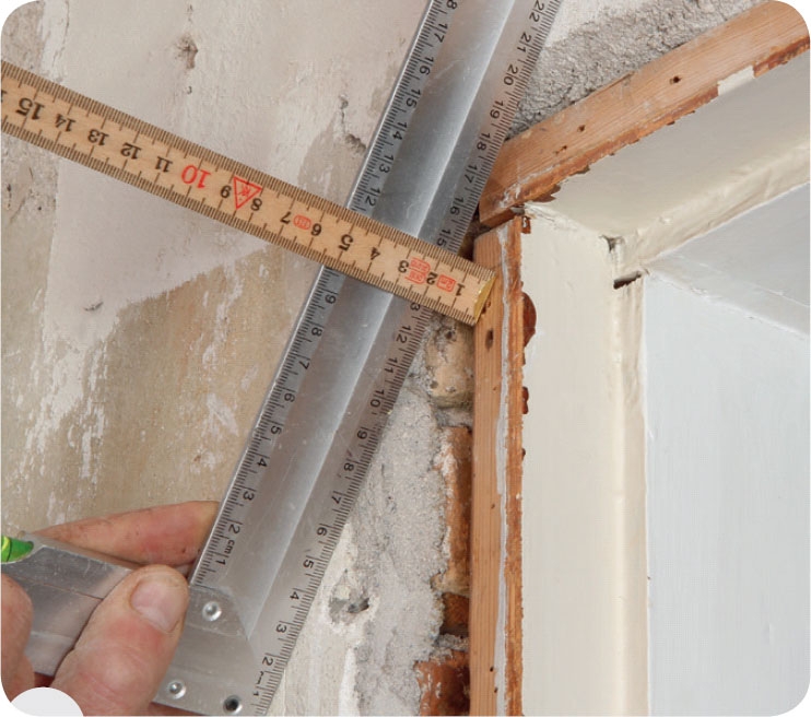 Räkna ut hur tjock den extra listen ska vara. Håll en vinkel längs väggen och mät avståndet till karmen.