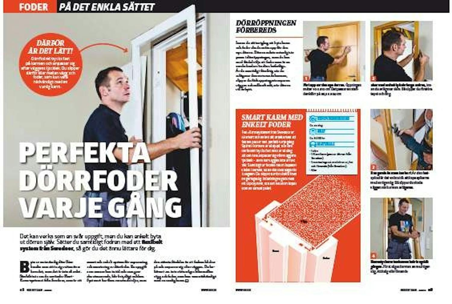 Innan du sätter igång att byta karm och foder ska du mäta upp för den nya dörren. Dörren måste naturligtvis passa i dörröppningen, men du kan med fördel välja ett foder som är en smula bredare än dina befintliga. Är du samtidigt försiktig när du avlägsnar den nuvarande karmen, slipper du förhoppningsvis reparera väggen och måla efteråt, när dörren väl är bytt.