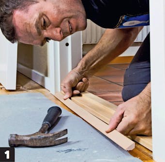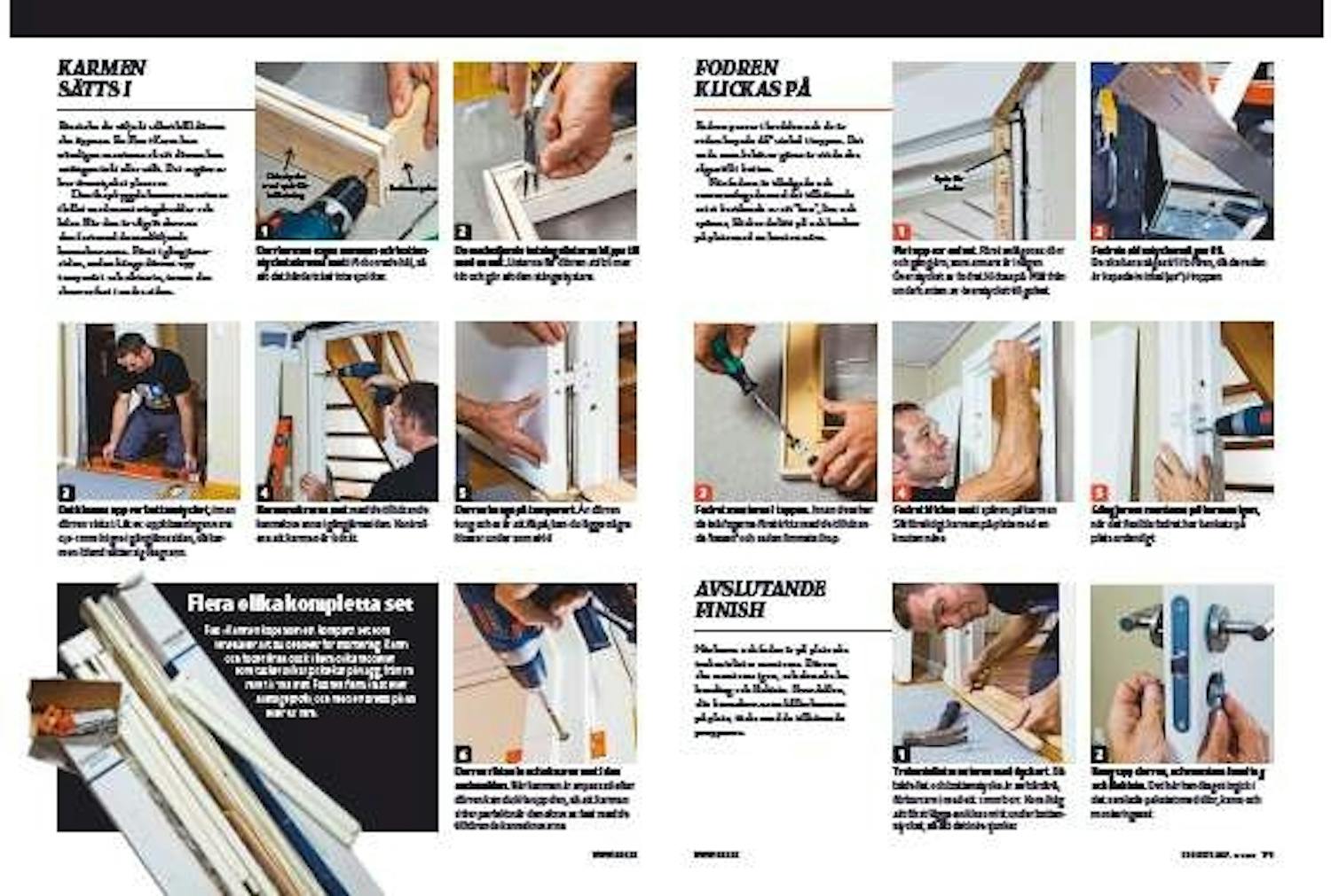 När fodren är tillsågade och sammanfogade med det tillhörande setet bestående av ett ”kex”, lim och spänne, klickas de lätt på och bankas på plats med en knuten näve.