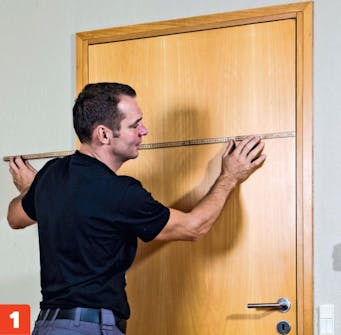 Mät upp för den nya dörren. Öppningen mäter 90 x 210 cm. Det passar en standarddörr på 82,5 x 204 cm.