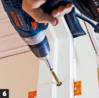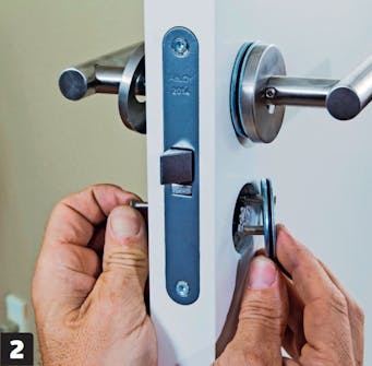 När karm och foder är på plats ska trekantslister monteras. Dörren ska monteras igen, och den ska ha handtag och låskista. Skruvhålen, där karmskruvarna håller karmen på plats, täcks med de tillhörande propparna.