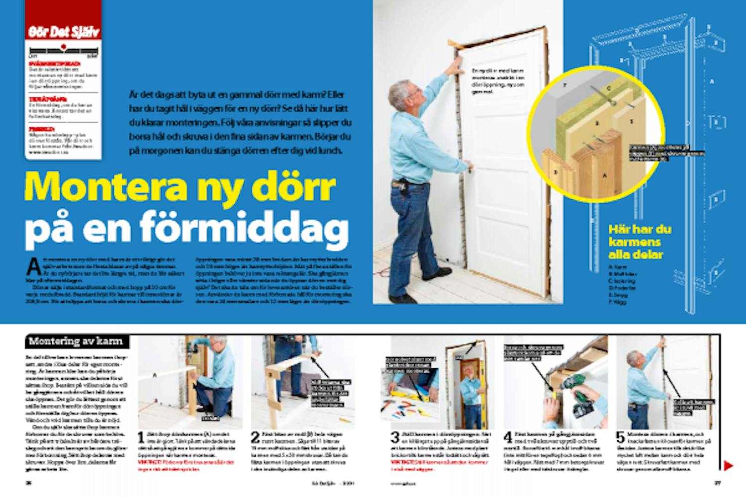 Det är relativt lätt att montera en ny dörr med karm i en dörröppning, om du följer våra anvisningar.