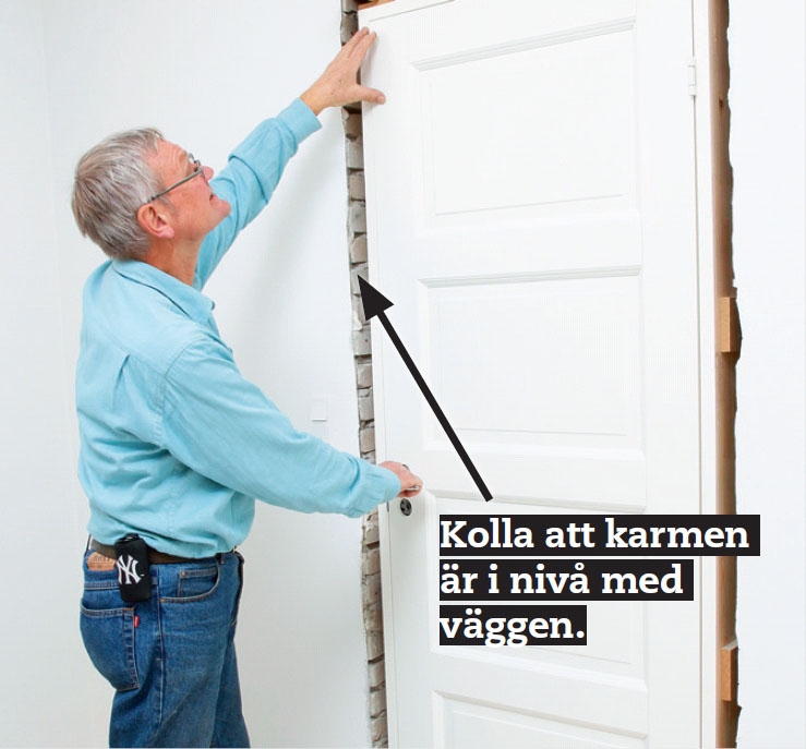 VIKTIGT! Ställ karmen så att den kommer i nivå med väggen.