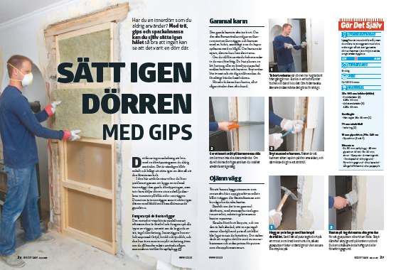 Det krävs två lager, och för att säkerställa en jämn övergång till väggen bör det första lagret gipsskivor vara några centimeter smalare och lägre än dörröppningen. Det andra lagret bör vara en centimeter mindre och ha fasade kanter. Du kan sedan spackla igen skarvarna så att de blir helt släta och osynliga.