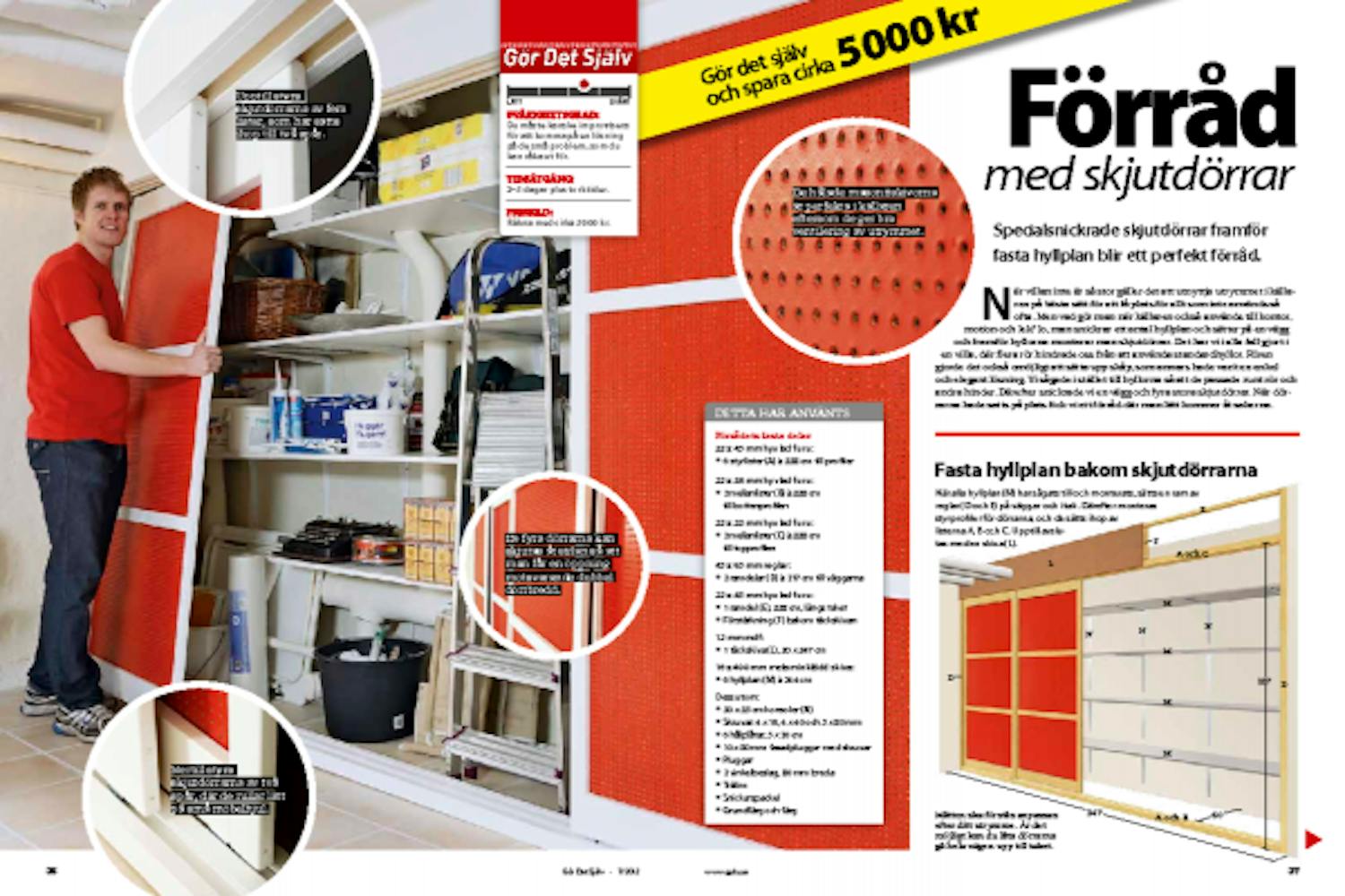 När du har satt upp alla hyllplanen är det dags att snickra den ram, som gör det möjligt att sätta upp skjutdörrar.