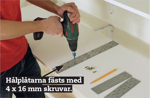Det kan bli nödvändigt att skarva hyllplanen. Det kan du göra ovanpå en konsol, men om du använder hålplåtar kan du skarva skivorna var som helst.