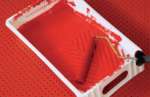 De hålade masonitskivorna målas snabbt och lätt med rulle på den blanka framsidan. Grunda först och rulla ytterligare en gång efter lätt finslipning av den grundade ytan.