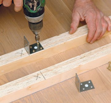 Skruva fast regeln D på de lodräta reglarna med 5 x 80 mm skruvar. Börja med en skruv mitt på regeln. När den sitter vågrätt fäster du den i övriga reglar.