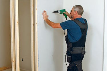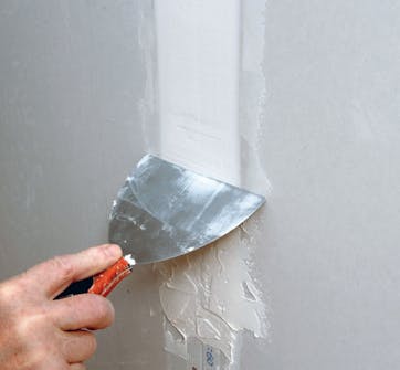 När gipsskivorna har satts upp och spacklats monteras socklar.