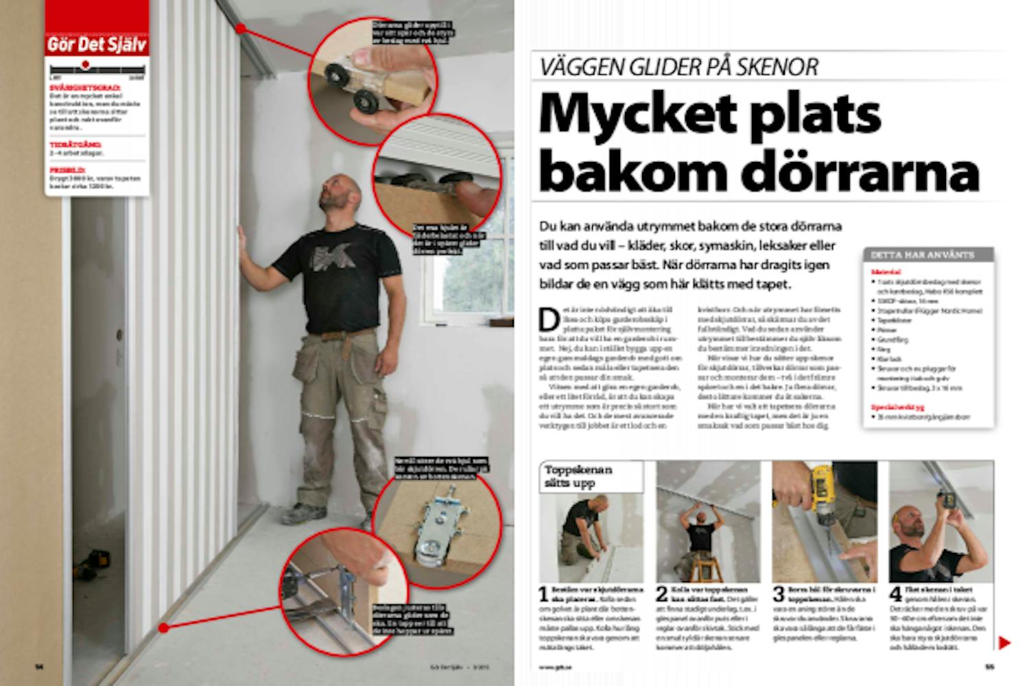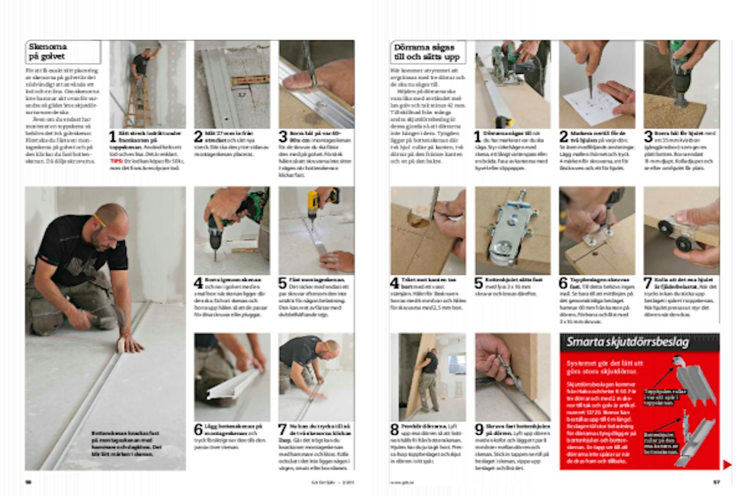 Bestäm var skjutdörrarna ska placeras. Kolla sedan om golvet är plant där bottenskenan ska sitta eller om skenan måste pallas upp. Kolla hur lång toppskenan ska vara genom att mäta längs taket.