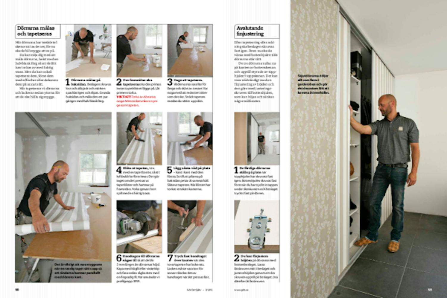 Här tapetserar vi dörrarna och lackerar sedan ytorna för att de ska hålla sig snygga.