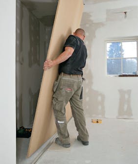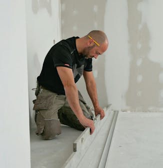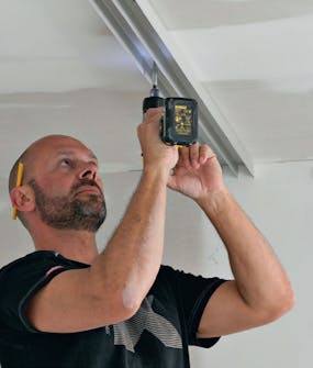 Kolla var toppskenan kan sättas fast. Det gäller att finna stadigt underlag, t.ex. i glespanel ovanför puts eller i reglar ovanför skivtak. Stick med en smal syl där skenan senare kommer att dölja hålen.