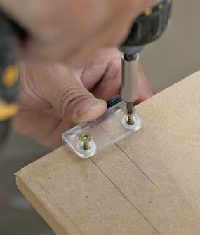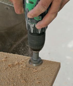 Borra hål för hjulet med ett 35 mm kvistborr (gångjärnsborr) som ger en platt botten. Borra endast 11 mm djupt. Kolla djupet och se efter om hjulet får plats.