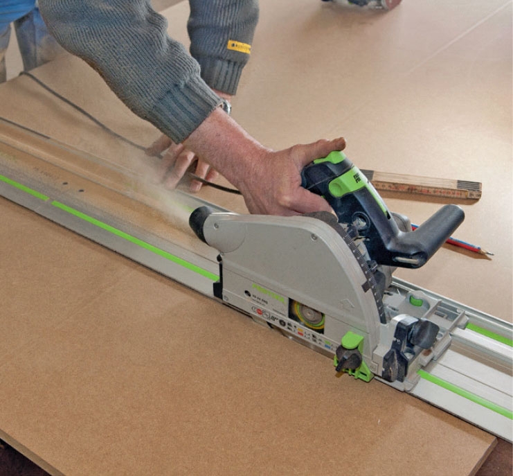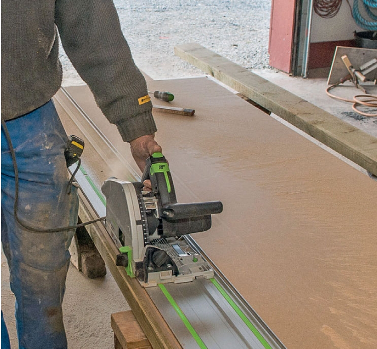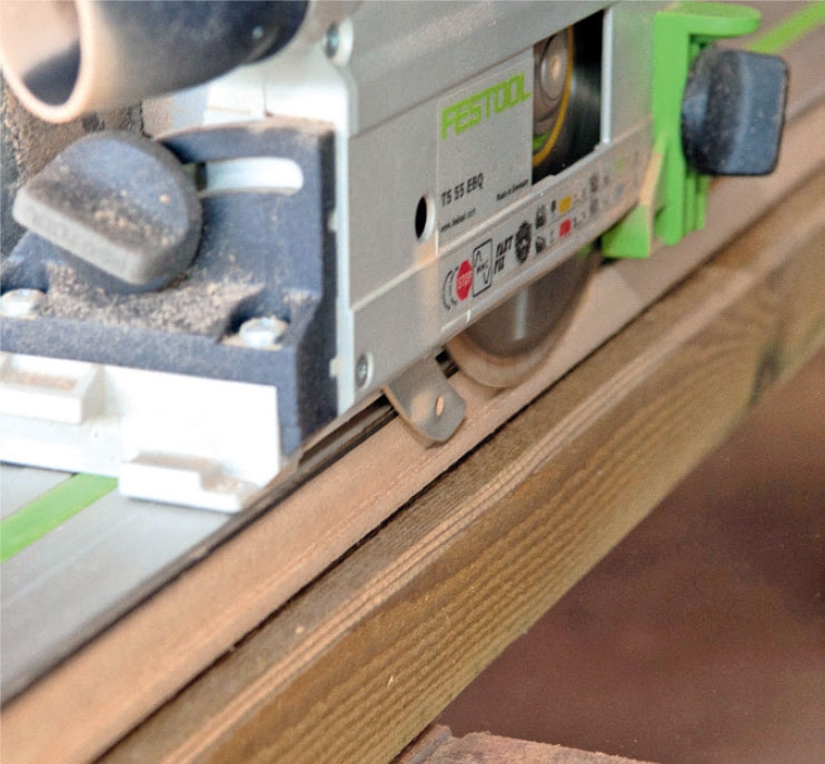 Med en sågskena och cirkelsåg är det relativt lätt att såga till delarna.