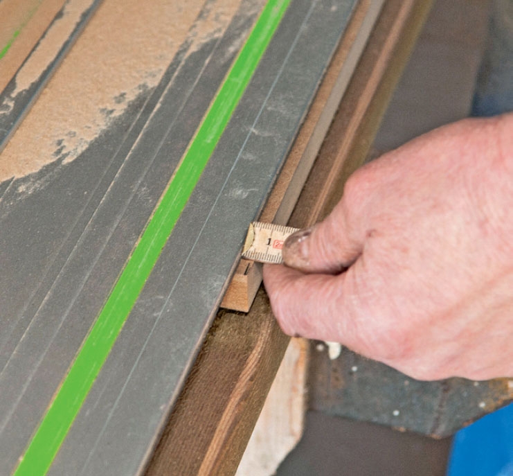 Det är enklast att såga ut falsen om du har en kapsåg, men det går även med hjälp av en sänksåg och sågskena.
