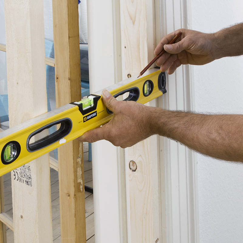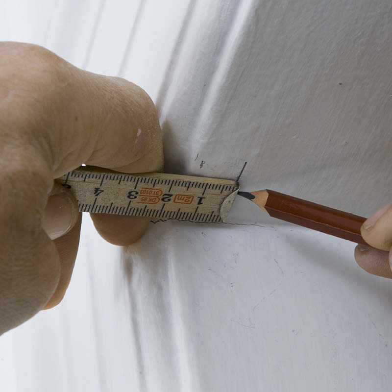 Det här är den del av jobbet där du verkligen behöver mittregeln, som vi tidigare satte 40 cm in från ena sidan av dörrkarmen.