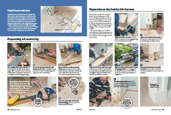 Såga till en bit mindre eller större regel så att det passar exakt enligt de två mallarna (de avskurna karmstyckena). Använd sänksågen till att göra dörrfalsen. Det är lättare än att använda en överfräs.