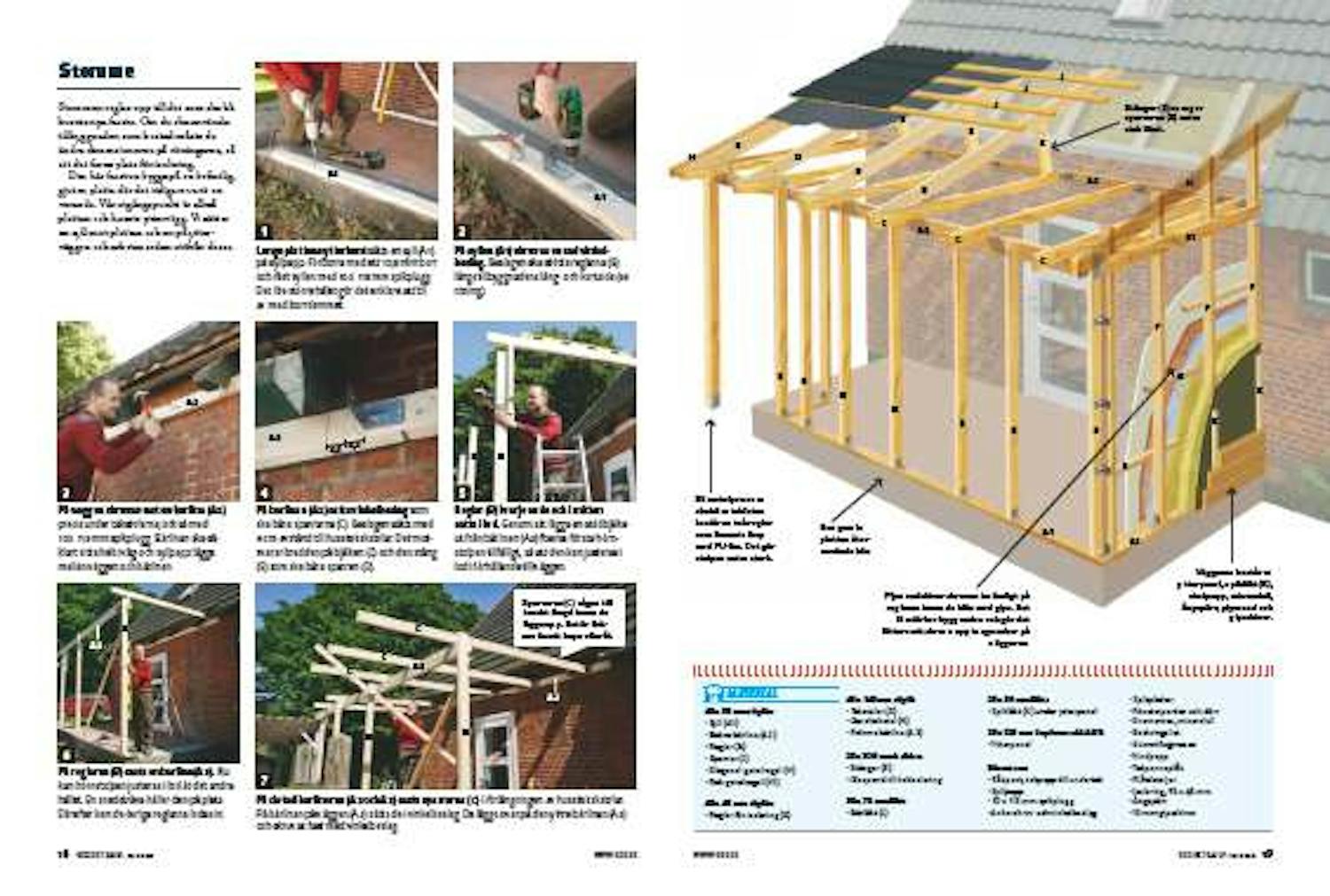 Det finns flera saker som måste vara klara innan du kan börja beställa hem material. För det första ska du ha kommit fram till var på huset din tillbyggnad ska göras. Du ska ha gjort en ritning. Och du ska vara klar över tillbyggnadens storlek, takets lutning, takmaterial, väggbeklädnad o s v. Det hela ska ju helst se harmoniskt ut och passa till huset i slutändan.