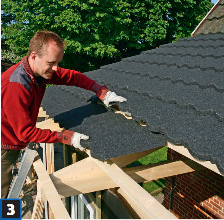 Taket byggs upp av takstolar och läkt som byggs ihop med det befintliga hustaket. Därför måste först några rader takpannor plockas bort och nya takstolar skruvas fast vid husets takstolar. Mellan dem sätts så kallade stänger, som bildar en trekant som förstärker konstruktionen.
