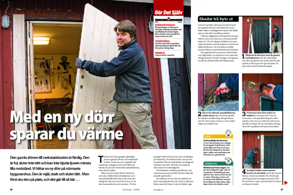 Monteringen av dörren är rätt lätt så länge du följer den medföljande anvisningen. Men du ska vara beredd att improvisera en del.
