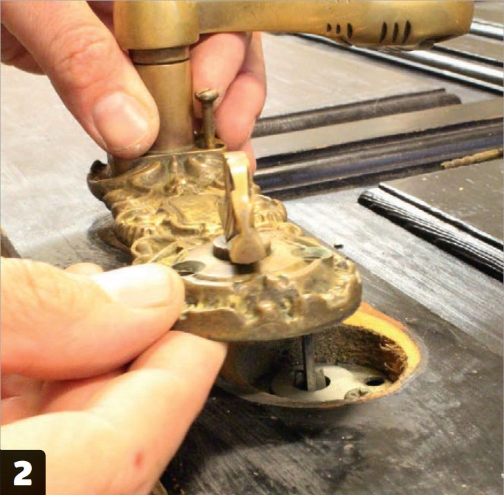 Dörrhandtaget tas bort. Alla skruvar skruvas ut, och så kan handtaget tas bort. Det kan vara monterat med genomgående skruvar, så du kan behöva använda en skruvmejsel från den andra sidan också.