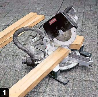 Såga sparrar (A2, A4, A5, A6 och A7) i 10° vinkel i båda ändar. Här passar en kap-/gersåg perfekt, men du kan också markera vinkeln på sparrarna och använda en hand- eller sticksåg.