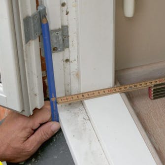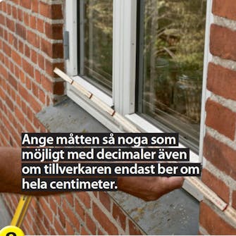 Mät karmens djup. De flesta karmar har ett djup på 11,5-12 cm, men äldre karmar kan vara bredare och i så fall ska också det nya fönstret ha en bredare karm.