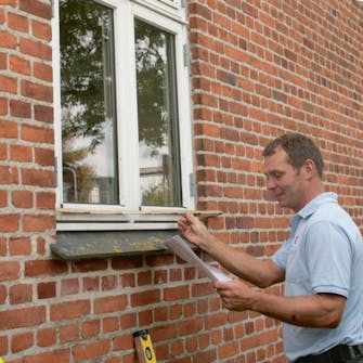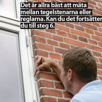 Kolla att öppningens sidor är lodräta. Om de inte är det måste du ta hänsyn till det vid fogningen. Tänk på att fogen inte på något ställe för vara smalare än 8 mm.