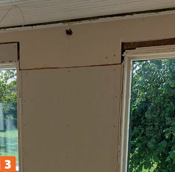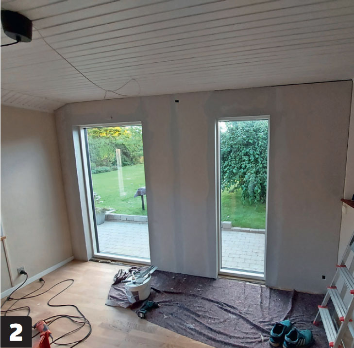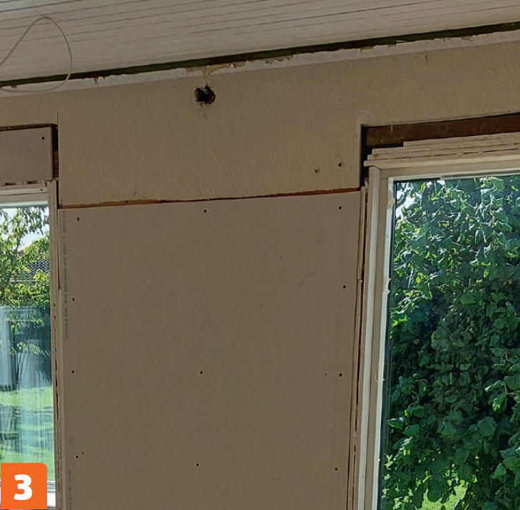 De invändiga smygarna kläs med gips så att man inte kan se där det har sågats hål i väggen.