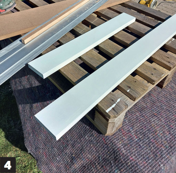 Fönsterbrädorna kapas och målas innan de monteras. Om de inte ska kunna tas av är det enklast att fästa dem med montagelim. Det sitter efter några minuter - och det håller.