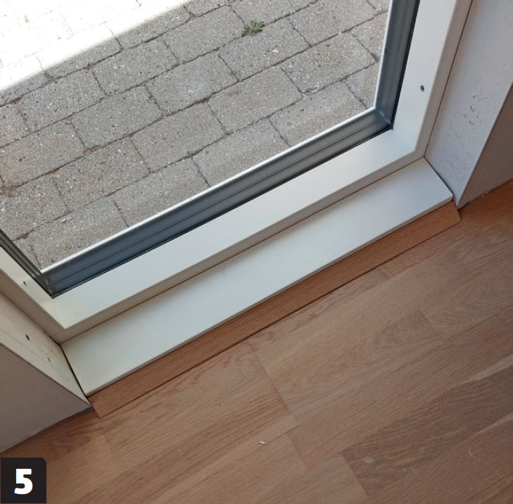 Hålen i golvet ska naturligtvis täppas igen. Vi väljer trälister som målas i samma färg som fönstersmygarna.