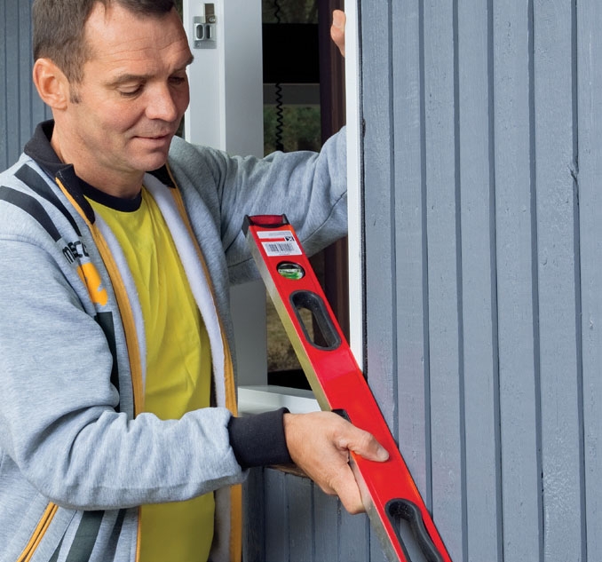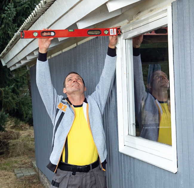 Det undersöker du lätt genom att hålla ett vattenpass vågrätt rätt ut från övre delen av bågen. Det vore snopet att sätta i ett fönster och sedan upptäcka att det bara kan öppnas på glänt. Sådant har ju hänt även yrkessnickare.