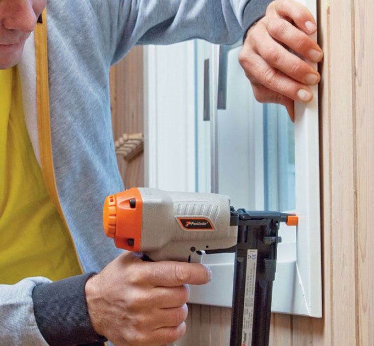 Spika fast listerna. Här använder vi dyckertpistol, men det går bra med hammare och vanliga dyckertar. Försänk spikarna med spikdrivare.
