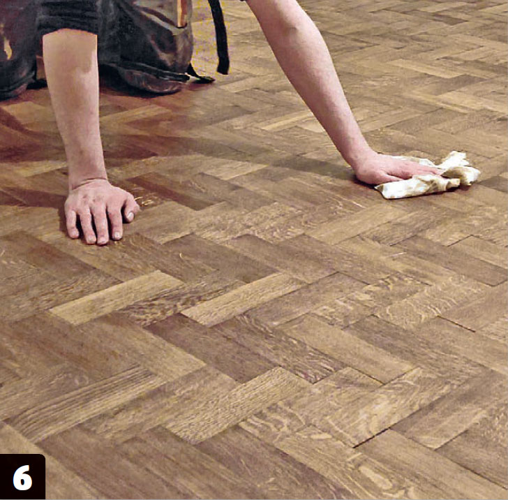 Om det finns sprickor i golvet kan de repareras med PU-lim blandat med slipdamm. Gör detta efter den första slipningen. När spacklet är torrt, slipa golvet ytterligare ett par gånger och olja in det med linoljefernissa, som tränger djupare in i träet än vanlig kallpressad linolja, så att golvet är väl skyddat och får en fin lyster.