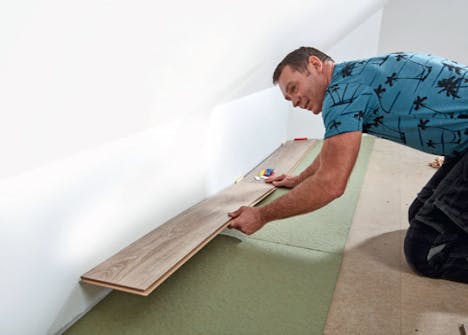 Se till att undergolvet är helt slätt och vågrätt, och lägg sedan ut eventuell fuktspärr och ljuddämpning/isoleringslager.