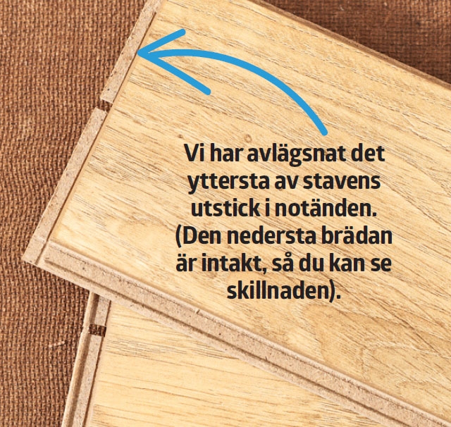 När du ska passa in en stav mot en vägg finns det inte alltid plats nog till att klicka den på plats. Då får du kapa den i längden, ta bort ”klicket”, och limma ihop stavarna.