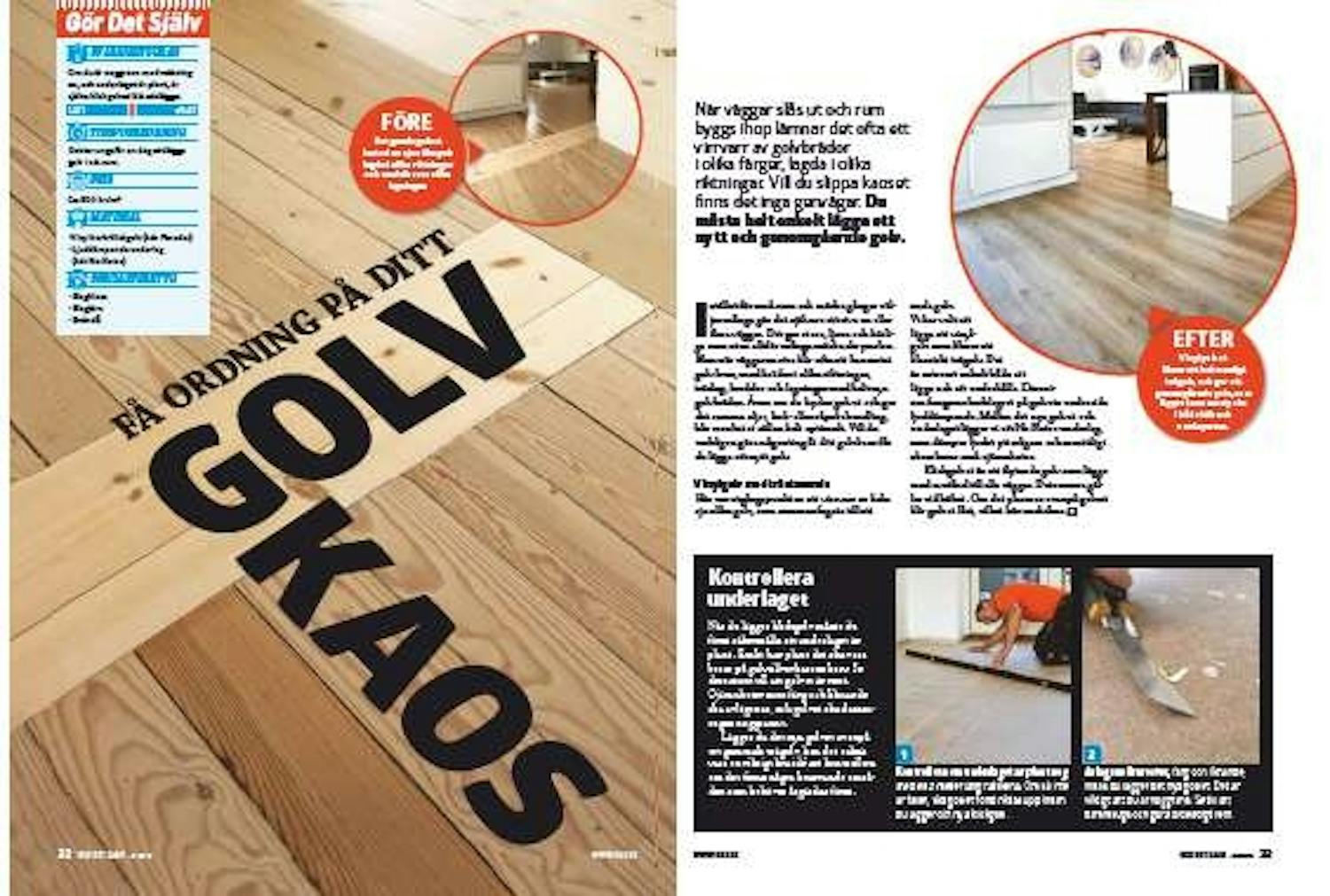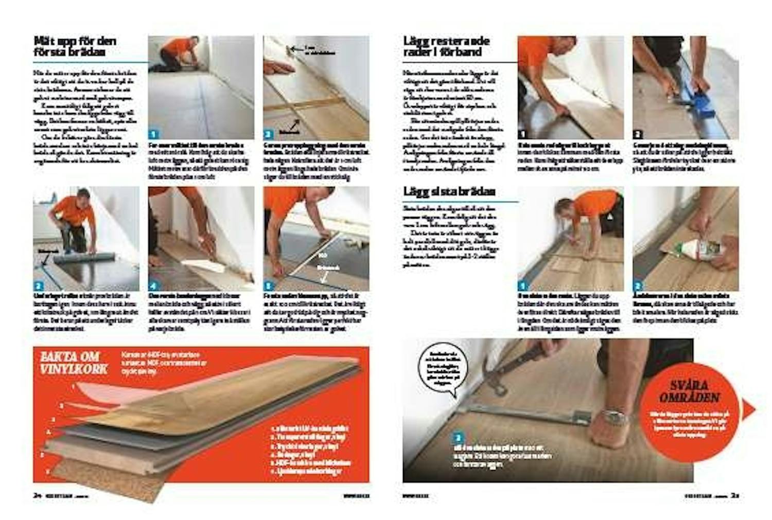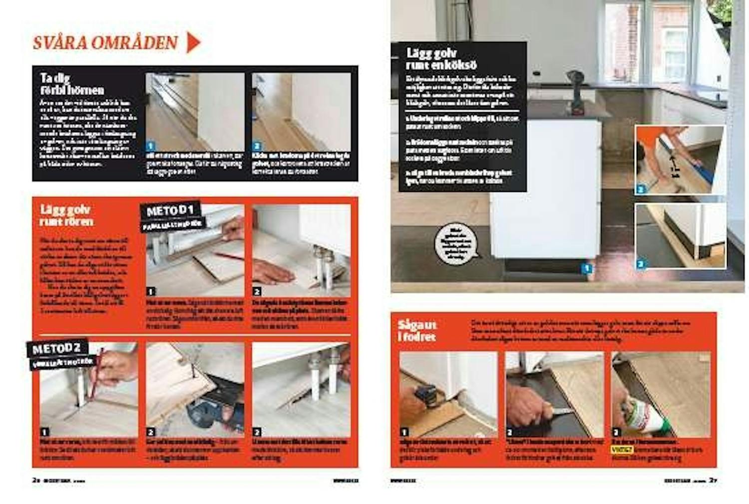 Kom samtidigt ihåg att golvet kanske inte bara ska ligga från vägg till vägg. Det kan finnas en köksö, spis eller annat som golvet måste läggas runt.