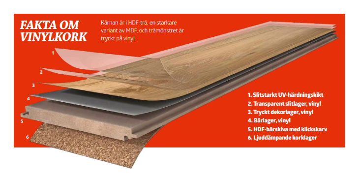 - Vinylkork-klickgolv (här Parador)