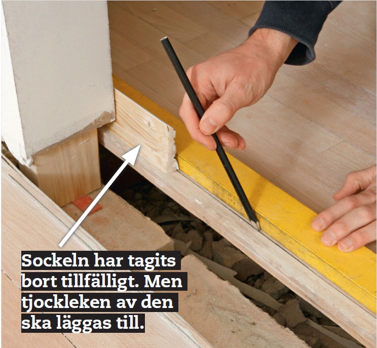 För att det ska bli snyggt har vi låtit sockeln fortsätta från ena rummet till det andra.