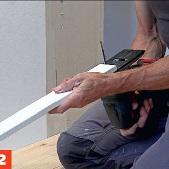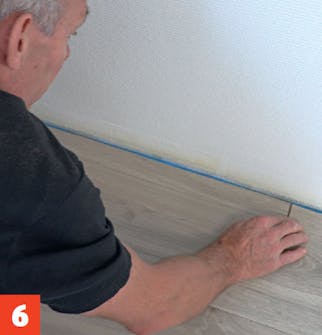 Placera golvlisten längs väggen. Lägg en blyertspenna på en kloss och rita ett streck i samma höjd nederst på hela listen.