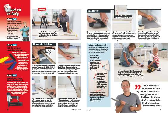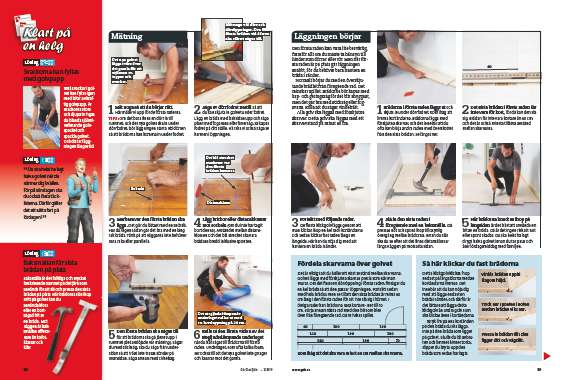 Den första raden kan vara lite besvärlig, framför allt om du måste ta hänsyn till hinder som dörrar eller rör. Men när första raden är på plats går läggningen snabbt, för du behöver bara hantera en bräda i sänder.