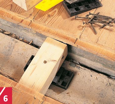 Det kan bli nödvändigt med stödklossar, kanske för att du skall fästa flera brädor. Fixera dem med skruvar eller kilar. Du kan också först fästa en regel på varje sida av hålet och fästa klossar på dessa.
