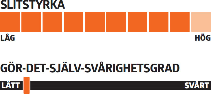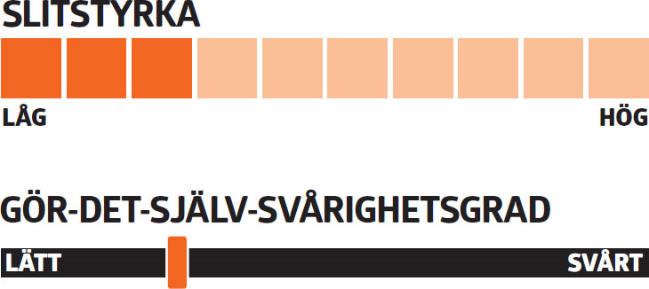 Kräver ingen underhåll. Blir det smutsigt så tvättas det bara med vanligt rengöringsmedel.