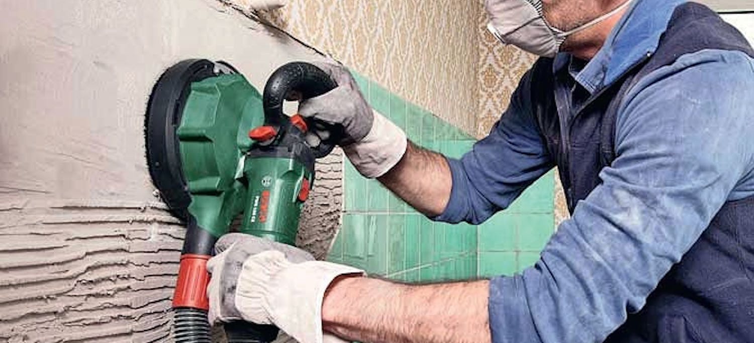 Först knackar du loss så många plattor du kan med hammare och mejsel. Det brukar gå lätt. Envetna plattor och bitar av plattor kan kräva en omgång med vinkelslipen.