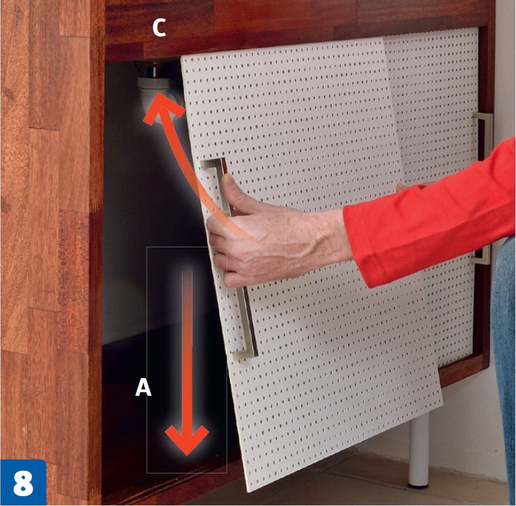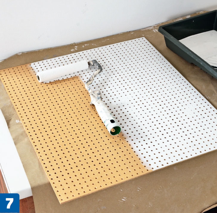 De två perforerade luckorna målas två gånger med interiörfärg. När färgen är torr kan du sätta ett handtag på varje lucka.