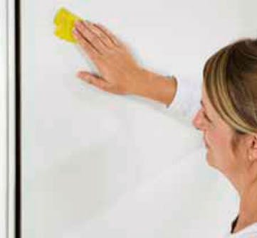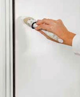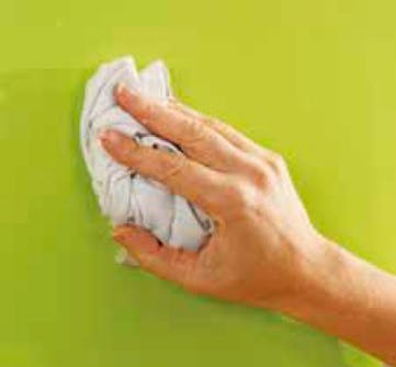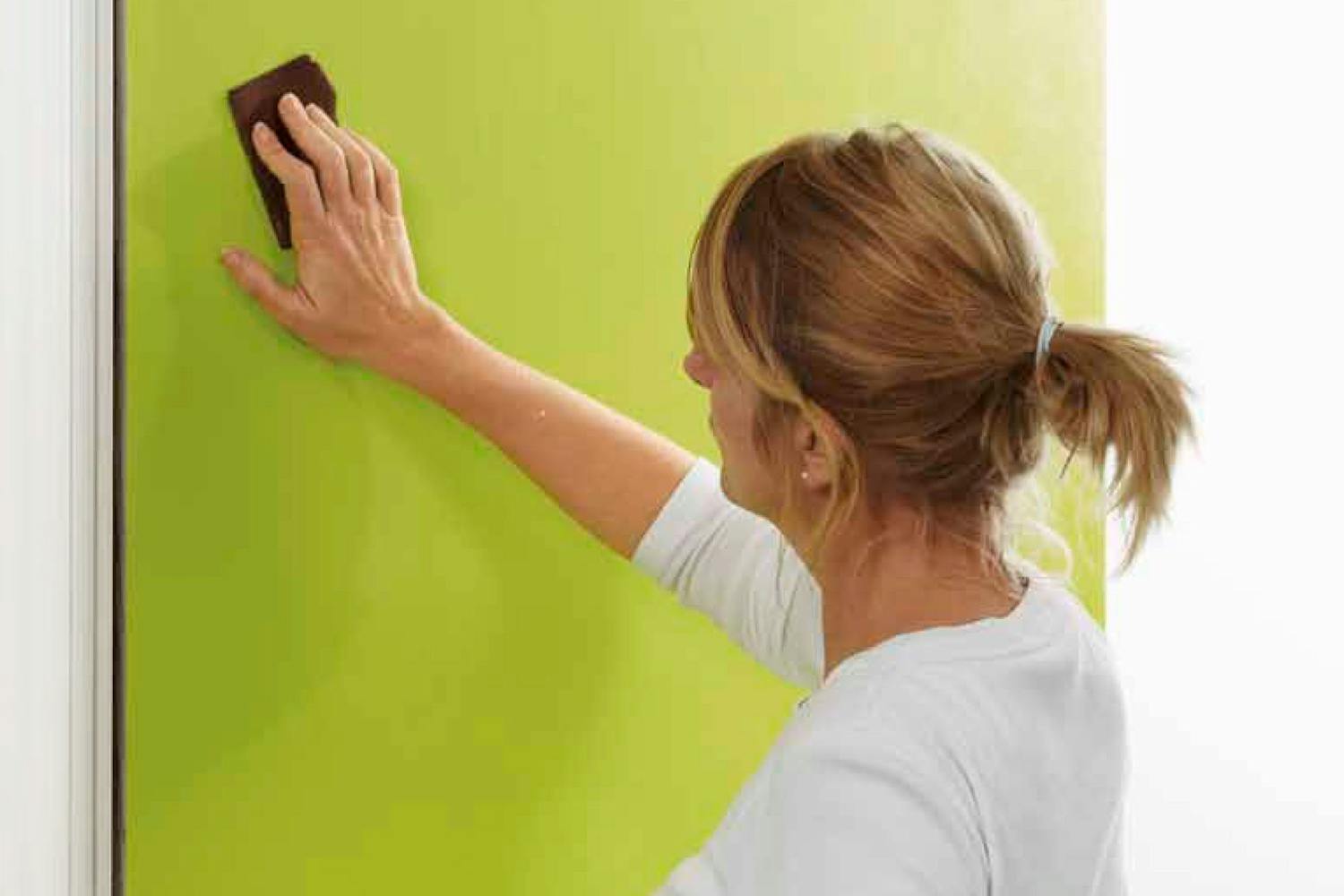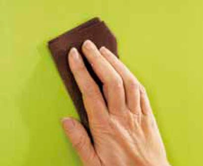 Slipa ytan med slippapper när du har tvättat av den med t.ex. målartvätt. Korn 180 är lagom fint. Om du byter från mörk till ljus färg, kan du välja lite grövre slippapper och slipa bort en del av färgen. Annars räcker det med lätt finslipning.