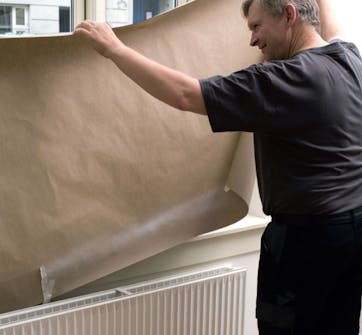 Maskera med plast och tejp så att det inte kommer färg på delar som inte ska målas. Stäng av värmen.