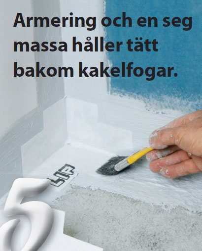 Det finns inga vattentäta fogar. Du kan inte räkna med att silikonfogen i badrummet är vattentät. Det är stor risk att fogen på ett eller annat sätt påverkas så mycket att den släpper och låter vatten passera. Tätning av våtrum ska därför utföras bakom kakel och klinker med godkända produkter, t.ex. tätmassa och väv.