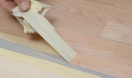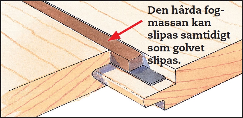 Om du vill skapa ett båtdäcksliknande golv ska du använda en fogmassa av typ MS-polymer. När en sådan har härdat blir den så hård att den kan slipas samtidigt som golvet slipas. Men gummifogen ska också kunna arbeta och därmed se till att golvet förblir helt och tätt - även om golvbrädorna och reglarna arbetar. Därför ska fogmassan fästa endast på sidorna och inte på bottnen. Det löser du med en särskild fogtejp. Den finns i olika bredder och är självhäftande.